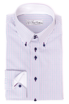Wer ein schlichteres Hemd bevorzugt, kann farbliche Akzente bei der Knopf- und Garnwahl setzen. Hier bieten wir bis zu 26 verschiedene Garne an, die Sie bei Ihrem Freizeithemd am Knopfloch und am Knopf selbst kombinieren können.