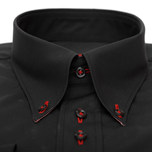Grade beim Tanzen geht es um Auffälligkeiten. Warum also nicht einmal ein Maßhemd mit einem Stehkragen oder einer anderen ausgefallenen Kragenart von Fine Cotton Company kreieren? Oder einen schwarzen Stoff mit rotem Garn versehen?