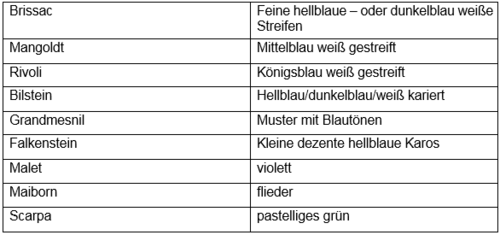 - die perfekten Hemdstoffe sind: Brissac, Mangoldt, Rivoli, Bilstein, Grandmesnil und Falkenstein.